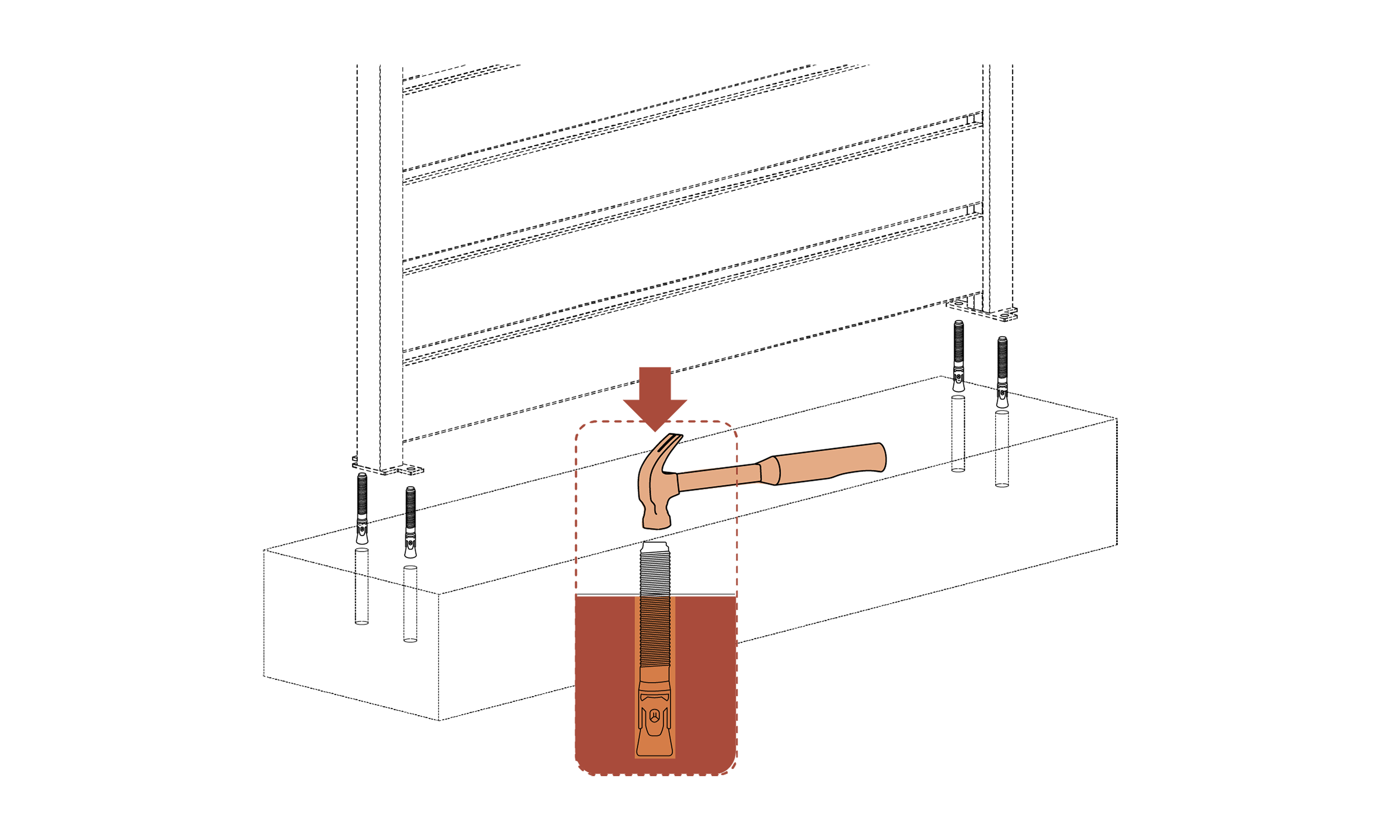 - Use a hammer to tap wedge anchors into pre-drilled holes over concrete.